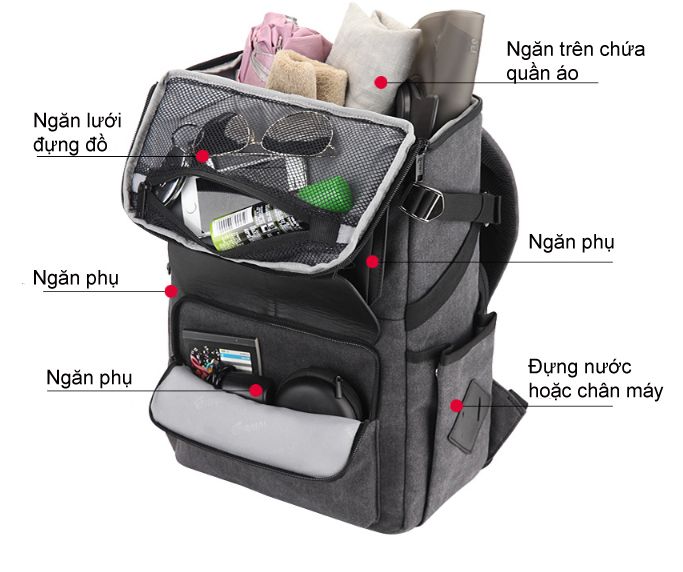 Ngoài ra, balo máy ảnh Eirmai SD06 còn được bố trí nhiều ngăn phụ để bạn tiện mang theo nhiều món phụ kiện khác, như ngăn chứa laptop 15 inch, ngăn nhỏ đựng điện thoại, ví tiền, v.v...