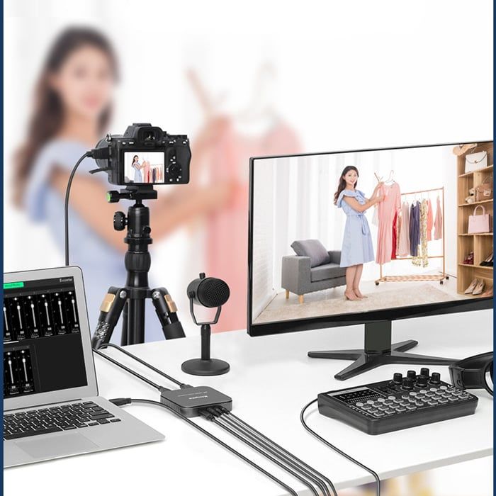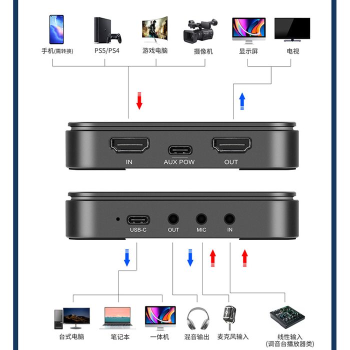 - Bộ sản phẩm gồm: thiết bị Capture Card, cáp USB to Type-C, cáp HDMI, đầu chuyển đổi USB sang Type-C, sách hướng dẫn sử dụng
