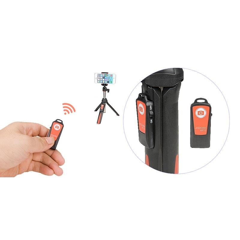 Kích hoạt chụp từ xa với công nghệ Wireless được tích hợp trên điều khiển đi kèm. Chiếc điều khiển mini này có thể gắn trực tiếp trên gậy, cũng có thể cầm riêng trên tay để kích hoạt chụp thông qua Bluetooth.